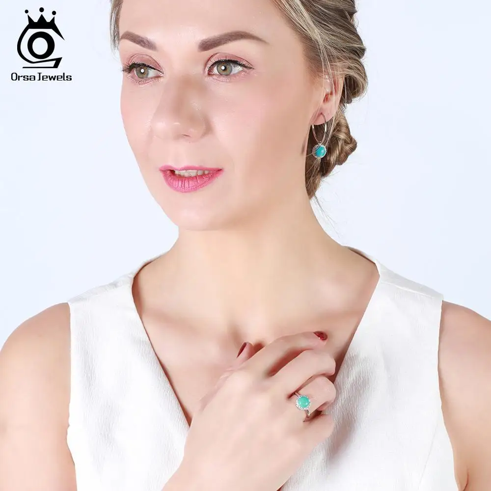 ORSA JEWLES 925 пробы серебро бирюзовые серьги кольцо комплект элегантный подарок на праздник Натуральный камень Модный костюм комплекты ювелирн...