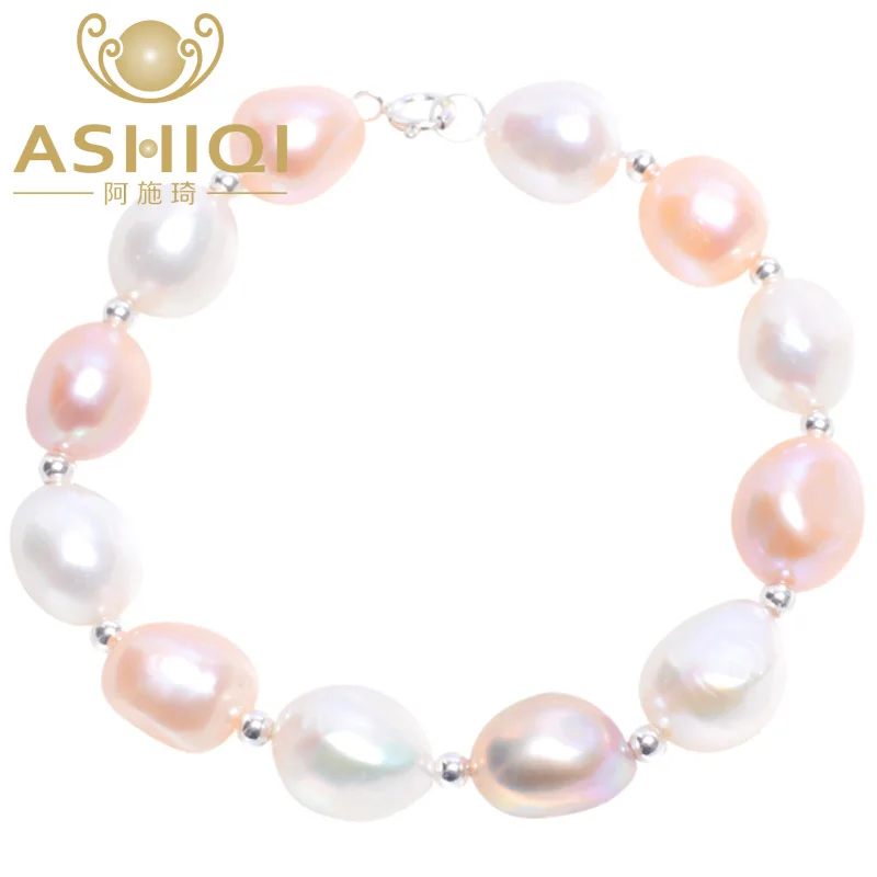 ASHIQI 10-11 мм большой натуральный барочный жемчуг Браслеты 925 пробы серебряные ювелирные бусинки для женщин