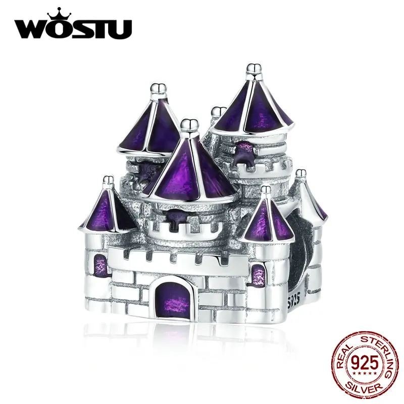 WOSTU 925 пробы серебро сказка замок Мозаика из бисера Фиолетовый Подвески подходят к оригинальному браслету, подвеска для Для женщин S925, ювелирное изделие, подарок CTC122