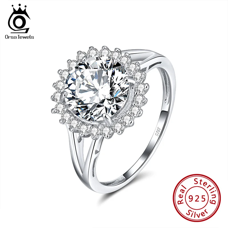 ORSA JEWELS блестящие кольца круглой огранки Блестящий кубический циркон 2019 Новое Стерлинговое Серебро 925 Кольцо Трендовое женское ювелирное изделие SR184