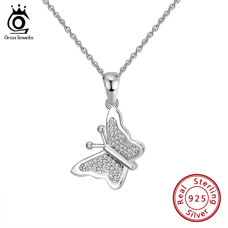 ORSA JEWELS Милая подвеска в виде бабочки, 925 серебряное ожерелье с подвеской в виде животного, кубический циркон романтическое ожерелье с подвеской, хорошее ювелирное изделие SN229