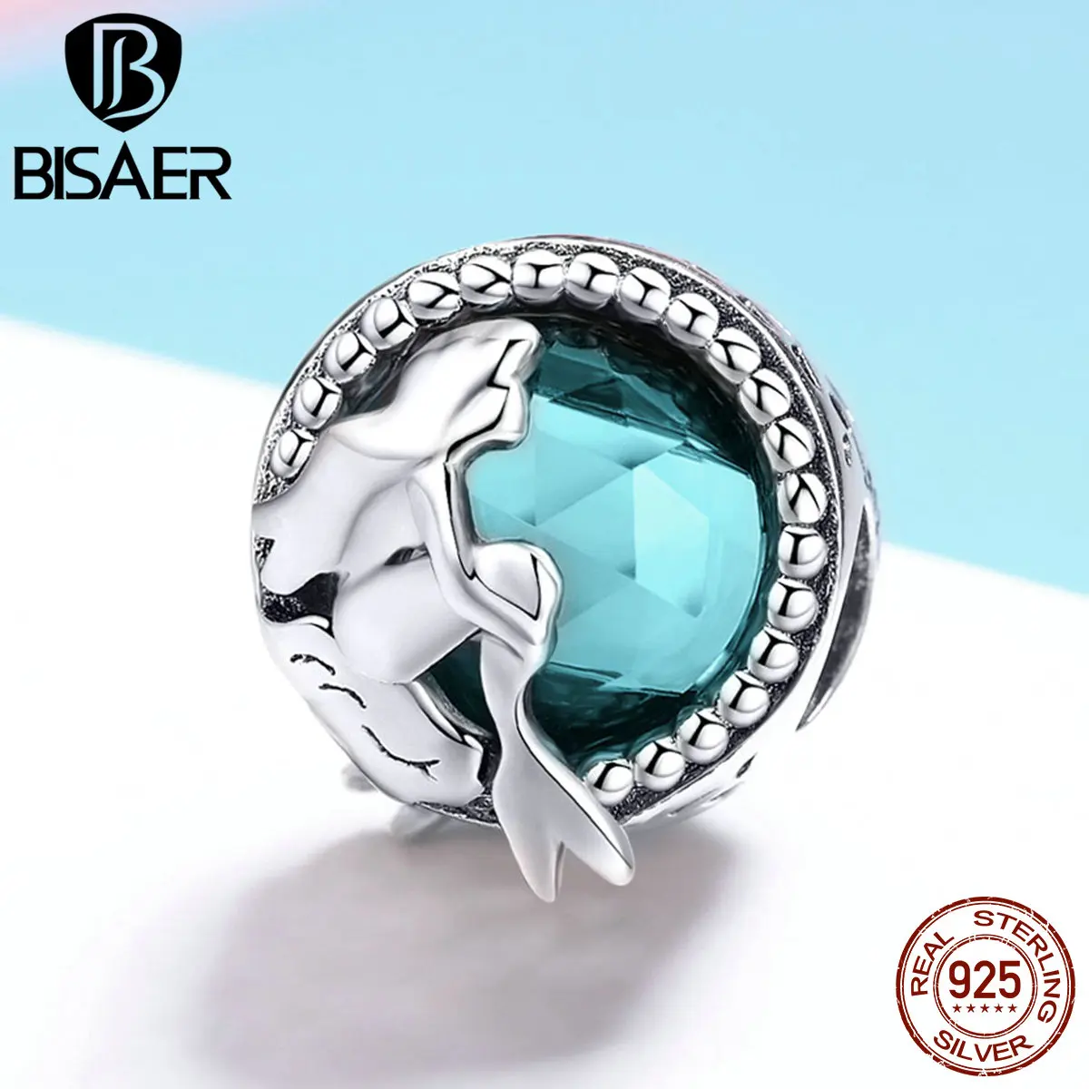 BISAER бусы 925 пробы серебро с синим морским камнем "Русалка" круглые металлические подвески для Для женщин ювелирные изделия ювелирных изделий Модные s925diy аксессуары GXC894