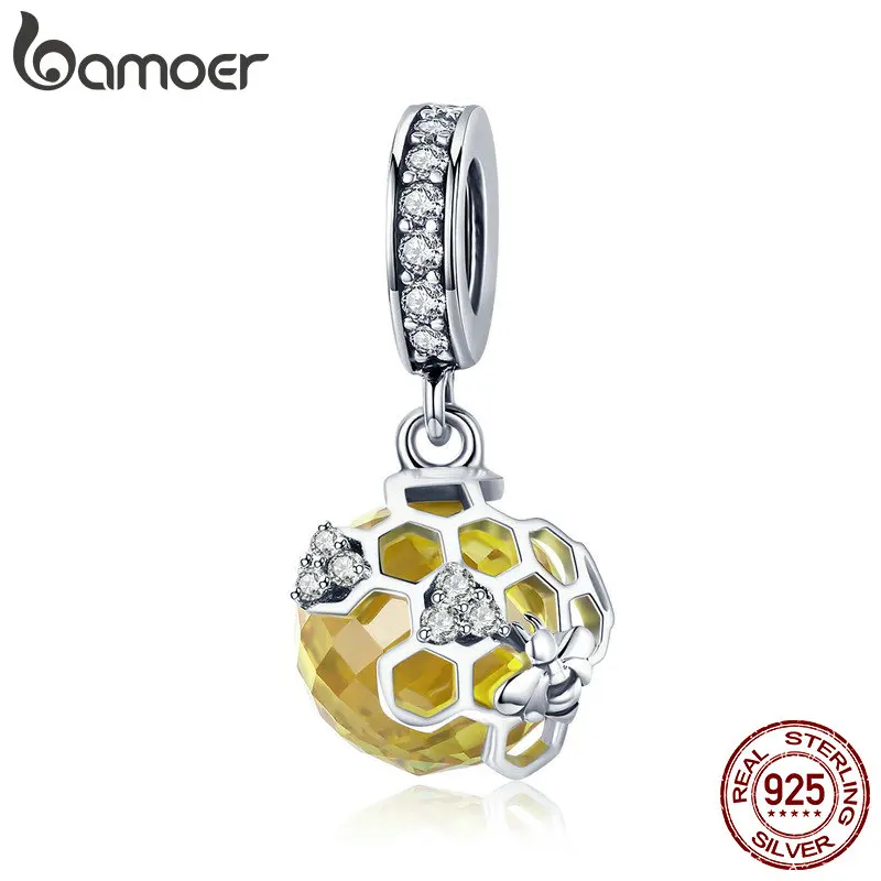 Браслет BAMOER SCC879, модный браслет с подвеской в виде сот и пчелы из серебра 925 пробы, желтый фианит