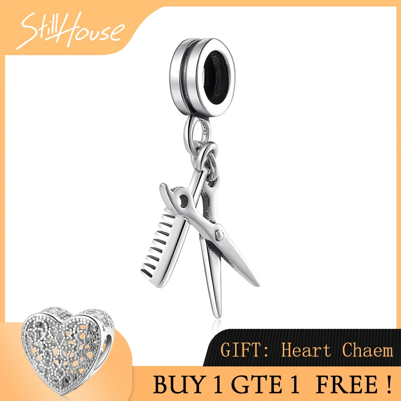 Серебро 925 пробы, парикмахерские инструменты, ножницы и расческа, тонкая подвеска из бисера, ювелирное изделие, подходит для оригинального браслета Pandora Charm