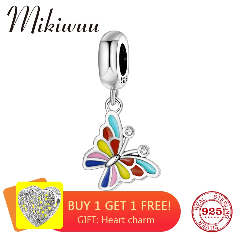 Новинка, Стерлинговое Серебро 925 пробы, цветная эмаль, CZ цветок, бабочка, прекрасный кулон, бисер, ювелирное изделие, подходит для оригинального браслета Pandora