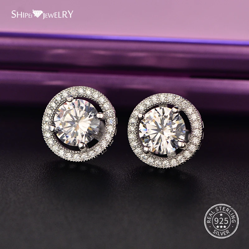 Shipei, серебряные 925 серьги-гвоздики для женщин, 100% 925 пробы, серебряные круглые серьги-гвоздики, подарок на свадьбу, день рождения