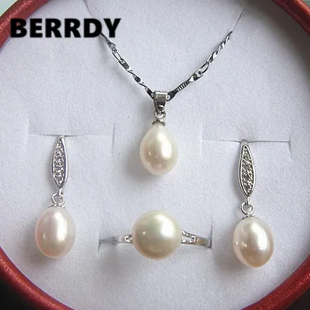 Натуральный Ювелирные изделия из жемчуга популярный комплект Свадебные ювелирные изделия набор Цепочки и ожерелья серьги кольца для Для ж...