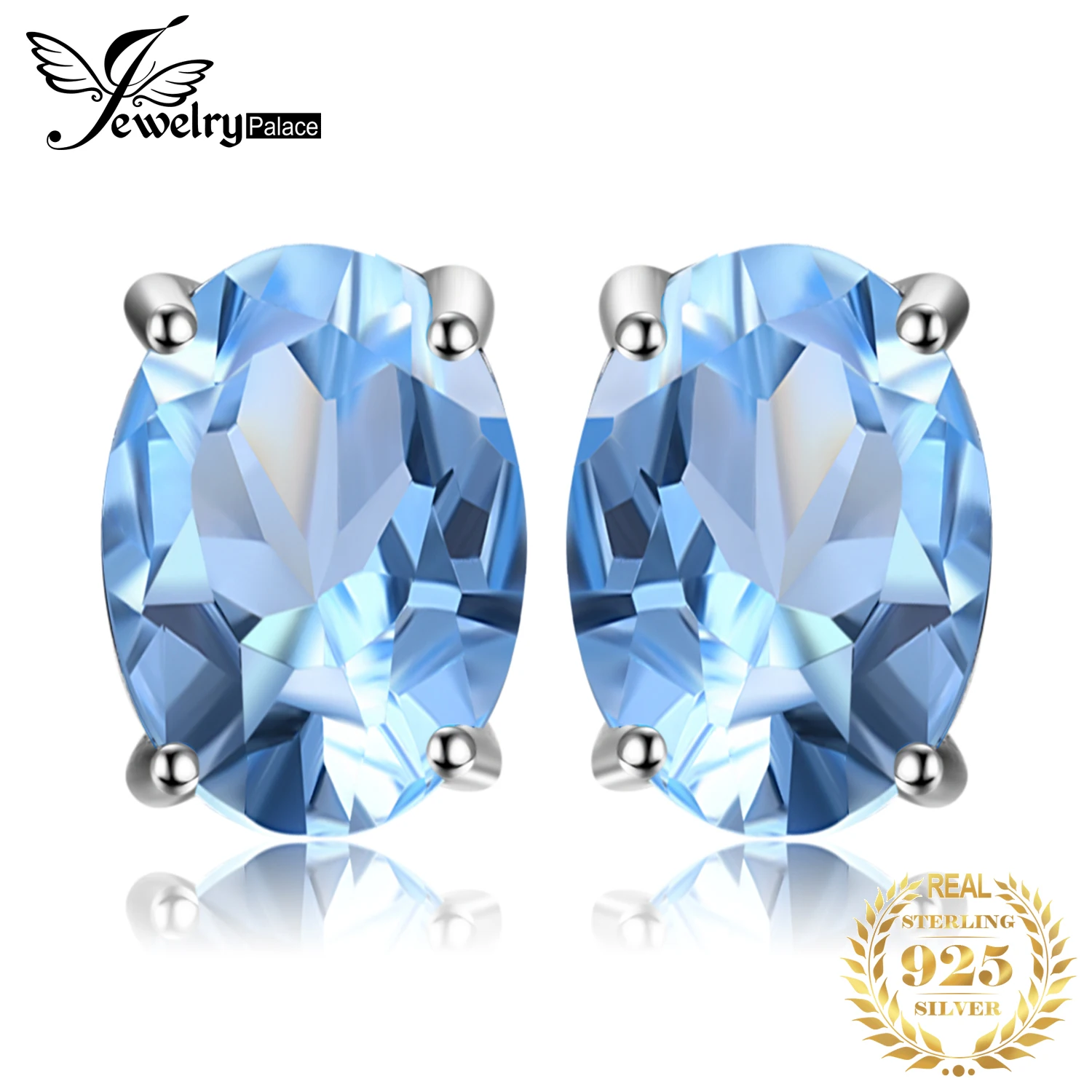 Ювелирные изделия 2020 карат, настоящие серьги-гвоздики с голубым топазом, 925 пробы серебряные серьги для женщин, корейские серьги, модное ювелирное изделие