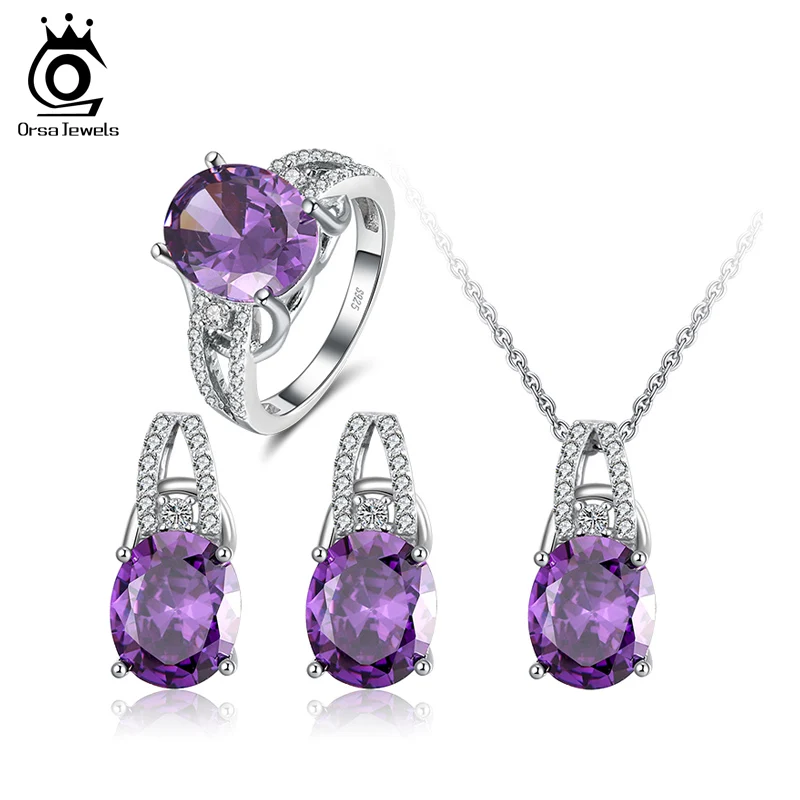 ORSA JEWELS красивый 925 Серебряное кольцо ожерелье серьги подарочный набор для женщин фиолетовый фианит AAAA элегантный ювелирный набор SS44