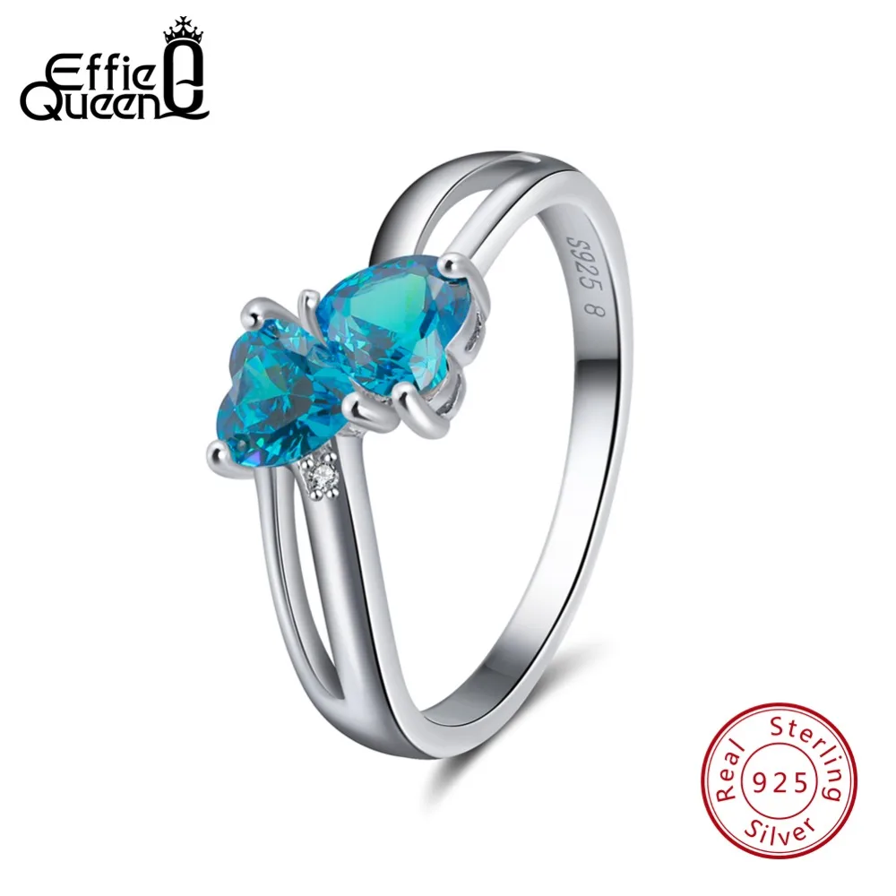 Эффи queen натуральная 925 пробы Серебряные кольца для Женский Двойное сердце синий AAA Циркон Свадебные Для женщин Jewelry вечерние подарок BR58-L