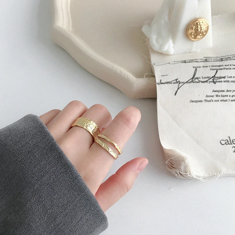 LouLeur вогнутые выпуклые фольгированные бумажные тонкие кольца Стерлинговое Серебро 925 пробы шикарные нерегулярные элегантные женские откры...