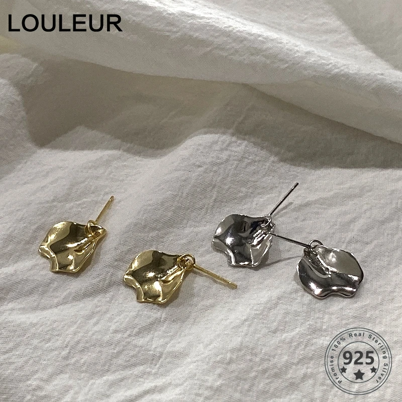 LouLeur, серьги-гвоздики с неправильным листом, Стерлинговое серебро 925, листья, простые золотые серьги для женщин, модные вечерние ювелирные из...