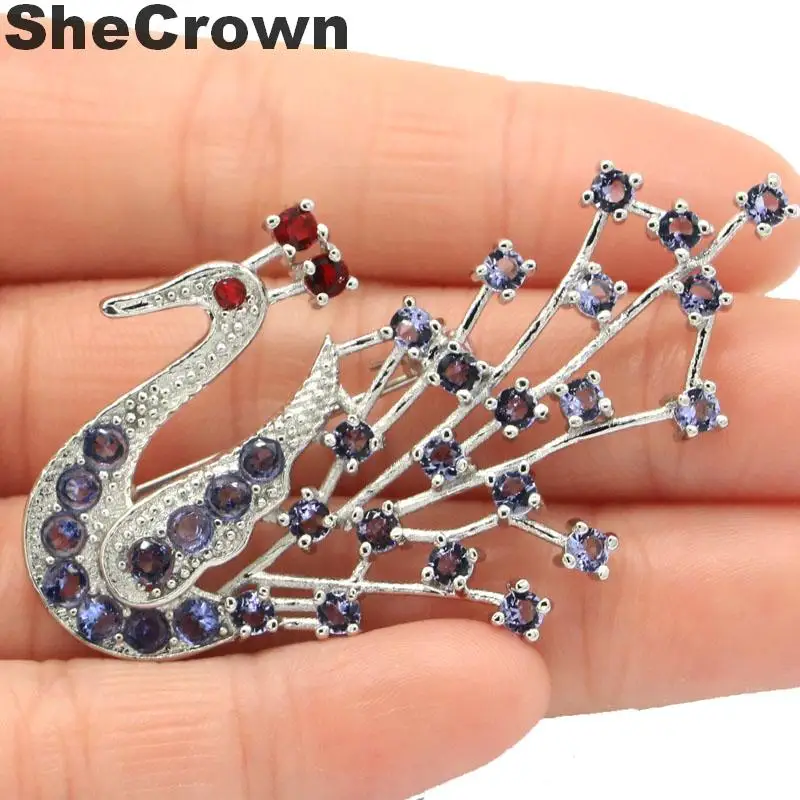 58x33 мм длинный большой созданный Павлин Форма иолит Рубин CZ Подарок серебряная брошь