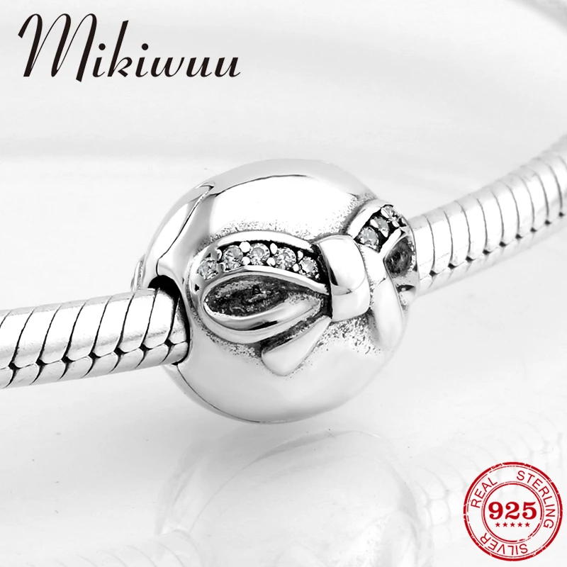 925 стерлингового серебра лук застежка-клипса Подвески бусины с прозрачными CZ ювелирных изделий Подходит оригинальный Pandora Шарм Браслет