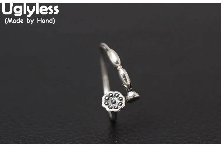 Uglyless Настоящее S 925 пробы серебро ручной работы кольца с лотосом для Для женщин Этническая Engraved Open кольцо простое платье Fine Jewelry