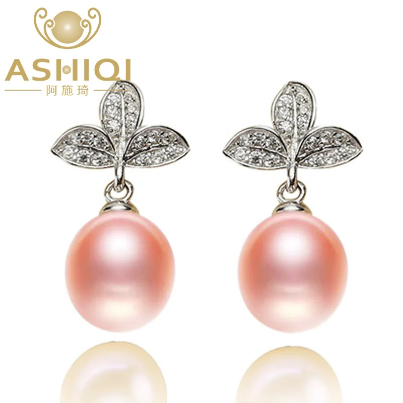 ASHIQI 925 натуральная стерлингового серебра 100% натуральный пресноводный жемчужные серьги AAA ZC лист для женщин Рождественский подарок