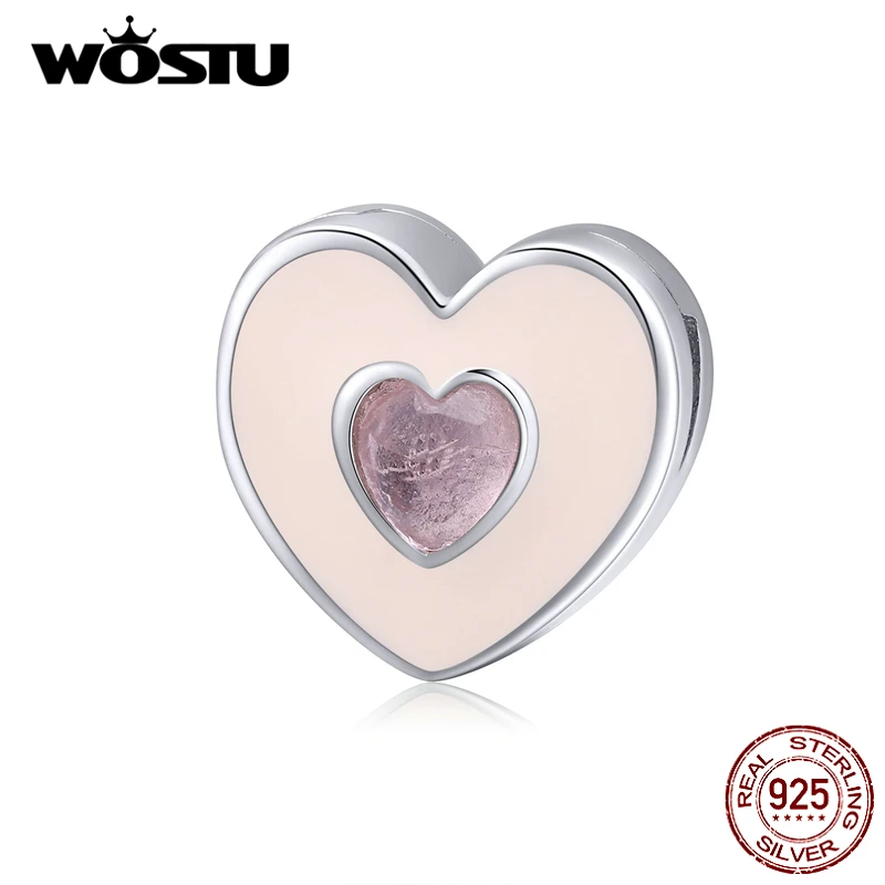 Бусины в форме сердца из стерлингового серебра 925 пробы с романтической розовой эмалью, кубический циркон, сердце, полное сердце, Подвески для изготовления ювелирных изделий, ECX113
