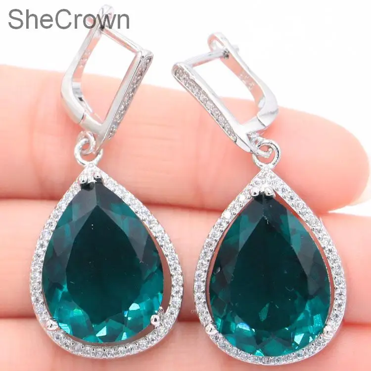 Большой тяжелый 17 г создан богатый синий Аквамарин натуральный белый CZ девушки серебряные серьги 43x19 мм
