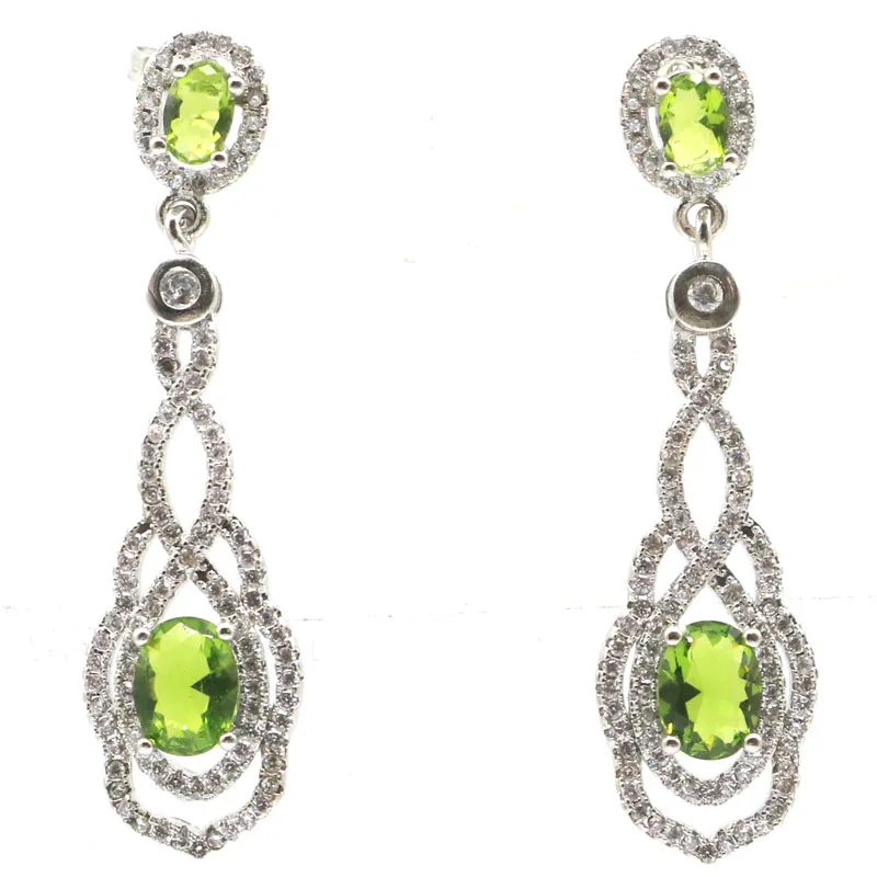 48x13 мм Красивый зеленый Перидот Белый CZ подарок для сестры ювелирные изделия серебряные серьги