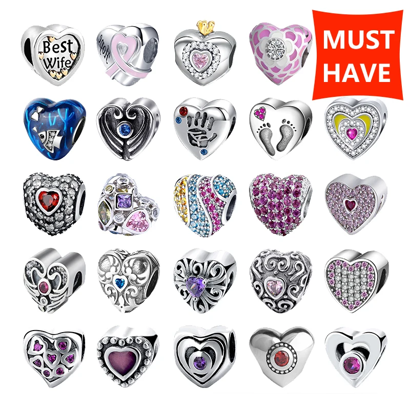 Браслет в форме сердца из серебра 925 пробы с 925 пробы и бусинами