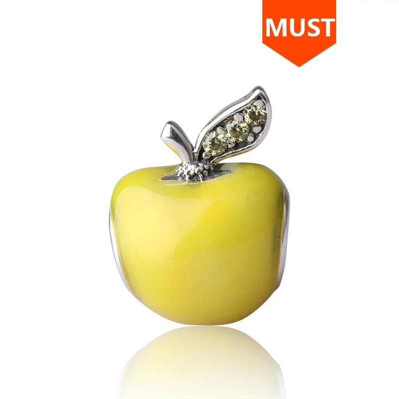 Модные ювелирные изделия для женщин, подарочные оригинальные Амулеты с желтой эмалью, бусины из яблока, подходят для аутентичных ювелирных украшений pandora, аксессуары, подарки