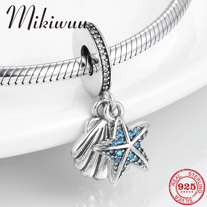 925 стерлингового серебра морской пляж стиль подвеска Морская звезда Подвеска в виде ракушки подходит оригинальный Pandora браслет с брелоками ...