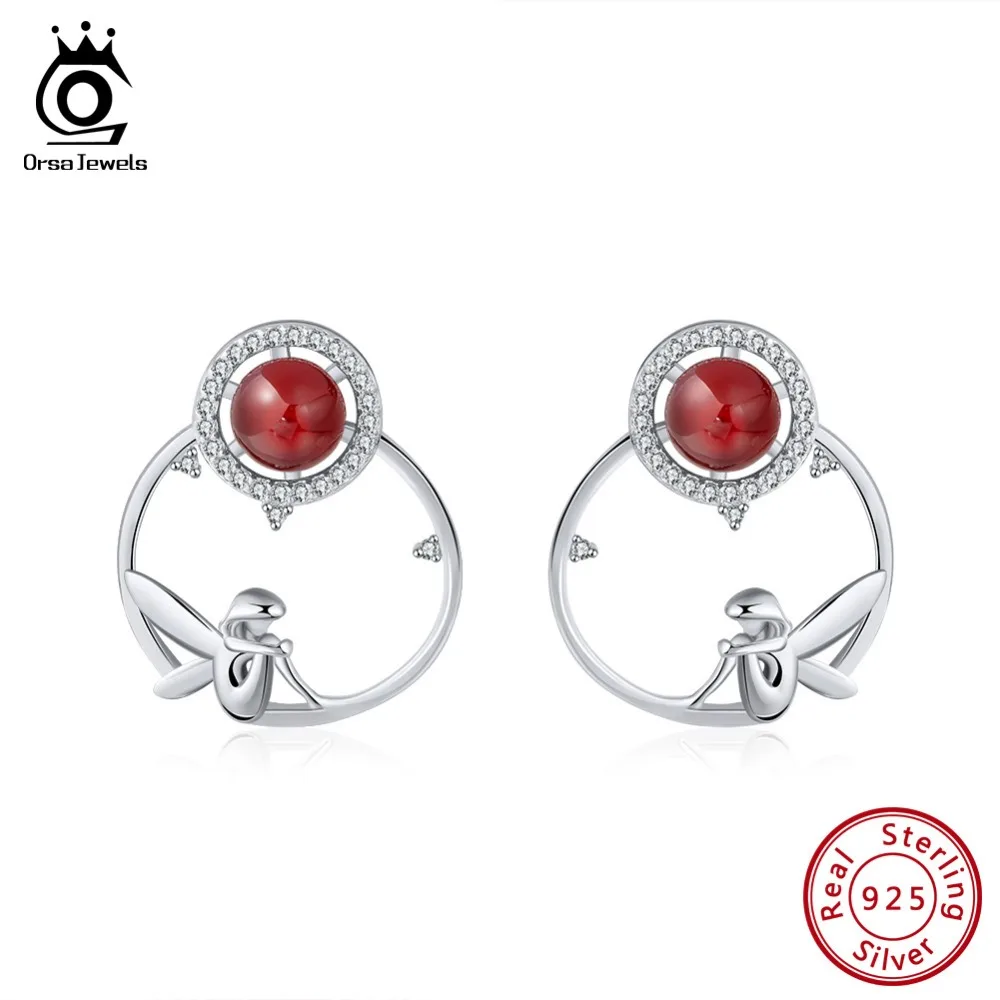 ORSA JEWELS Твердые 100% стерлингового серебра 925 женские серьги оригинальная Фея Спящая на фруктовом дереве романтические Драгоценности SE99