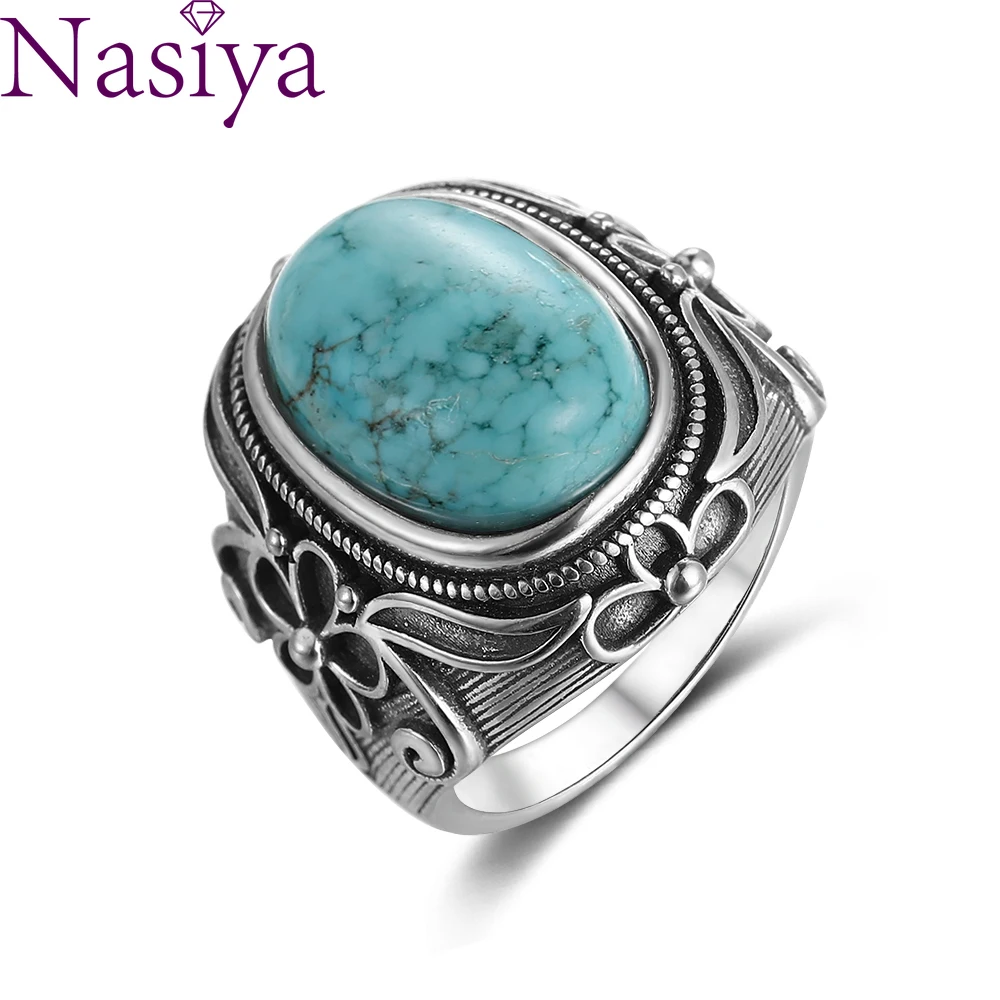 Кольцо Из Натуральной Бирюзы, женское ювелирное изделие из серебра 925 пробы, ретро кольцо для вечеринки 11х17мм, большой эллипс, драгоценный камень, подарок, оптовая продажа