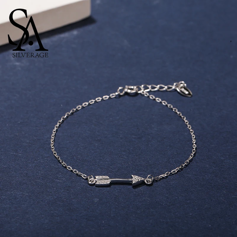 SA SILVERAGE 925 пробы серебро браслеты с подвесками и браслеты для женщин ювелирные украшения стрела купидона Серебряный браслет браслеты