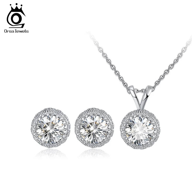 ORSA JEWELS, новинка, женское ожерелье, серьги, набор, 925 пробы, серебро, Круглый, AAAA, кубический циркон, свадебный подарок, ювелирные наборы, SS64