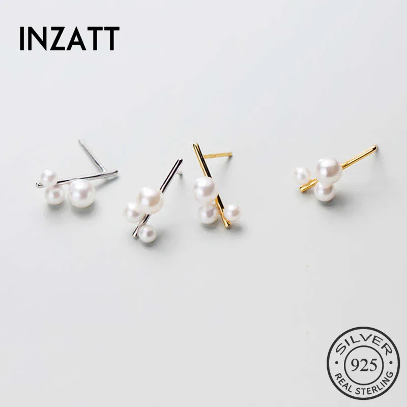 INZATT Настоящее серебро 925 пробы сердце жемчужные серьги-гвоздики Модные женские ювелирные украшения для вечеринки минималистичные милые аксессуары подарок