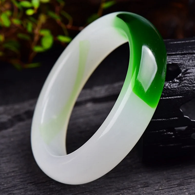 AAA широкий браслет "версия" Китайский зеленый нефрит ручной резной браслет 58 мм-64 мм KYY8757