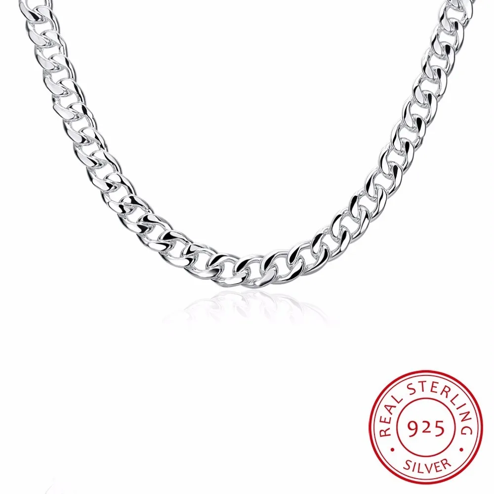 Lekani men's fine jewelry 20 ''ширина 10 мм Плоское Ожерелье 925 пробы Серебряное модное очаровательное толстое боковое ожерелье воротник de Prata