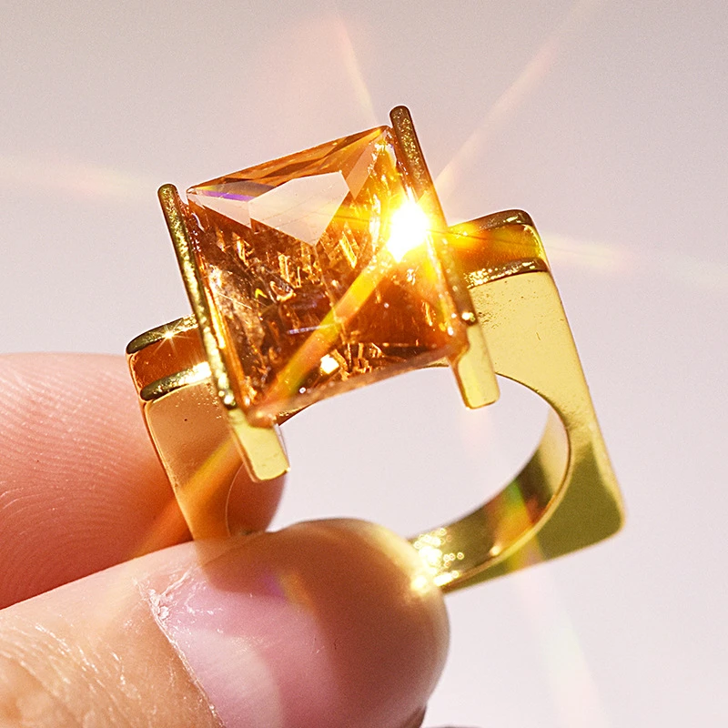 Штамп 14K Золотое квадратное кольцо для женщин желтый топаз Аметрин Bizuteria драгоценный камень аниллоса алмазное ювелирное квадратное кольцо "Принцесса" коробка gümüş серебряные украшения кулоны