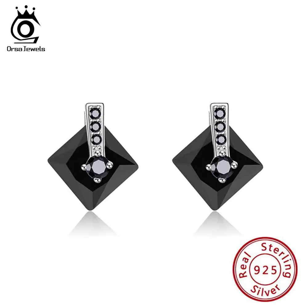 ORSA JEWELS Настоящее 925 пробы серебро слайд серьги-гвоздики в форме Для женщин блестящие aaaa фианит квадратной огранкой, черно-белая женская Праздничная обувь ювелирные изделия SE192