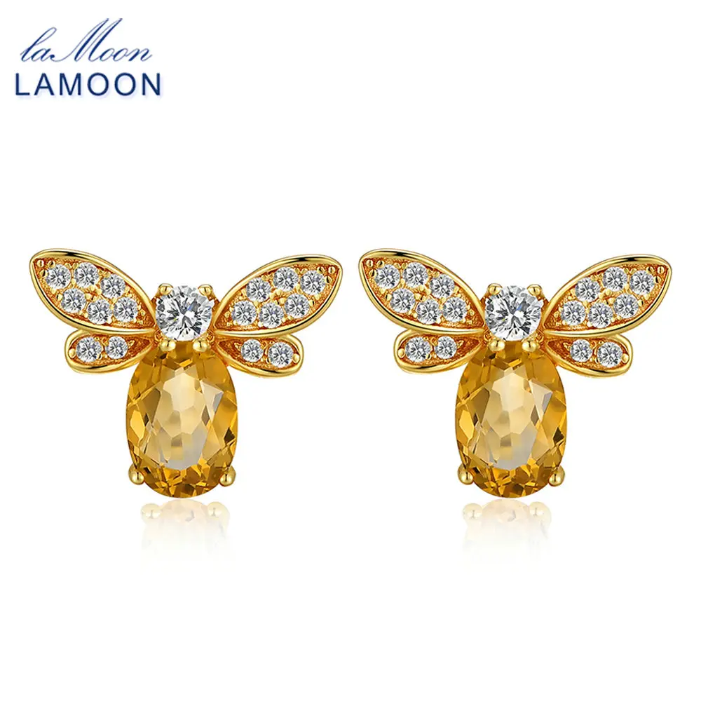 Lamoon 925 стерлингового серебра--Jewelry Серьги пчела 5x7 мм 1ct 100% натуральный цитрин Серьги-гвоздики для Для женщин ювелирные украшения S925 ei041