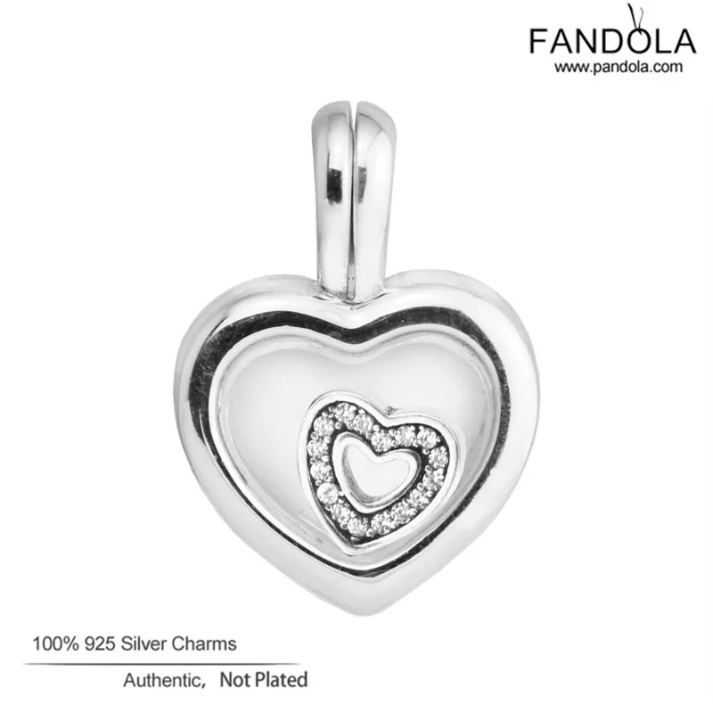 Подходит Pandora талисманы браслеты 925 пробы Серебряное сердце плавающий кулоны с бусинами талисманы для DIY браслет ювелирных изделий Berloque