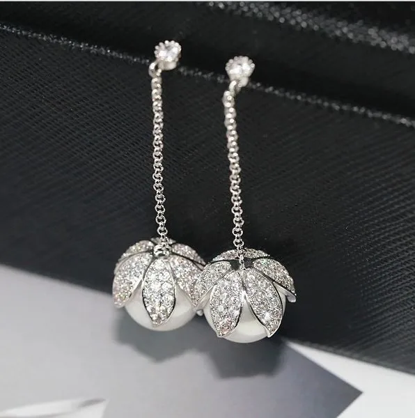 Новое поступление корейские модные трендовые серьги-Клипсы из настоящего серебра 925 пробы с милыми цветами и яркими кристаллами AAAAA CZ