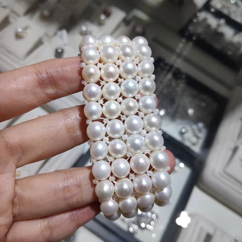 JYX элегантный натуральный пресноводный жемчуг браслет 5 прядей 6,5*8 мм эластичный регулируемый браслет из жемчужин 7 "Женский выбор