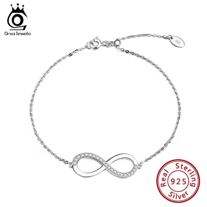 ORSA JEWELS, настоящий регулируемый браслет бесконечности 925, АААА, циркон, Стерлинговое Серебро, очаровательный браслет для женщин, Простые Ювелирные изделия SB54