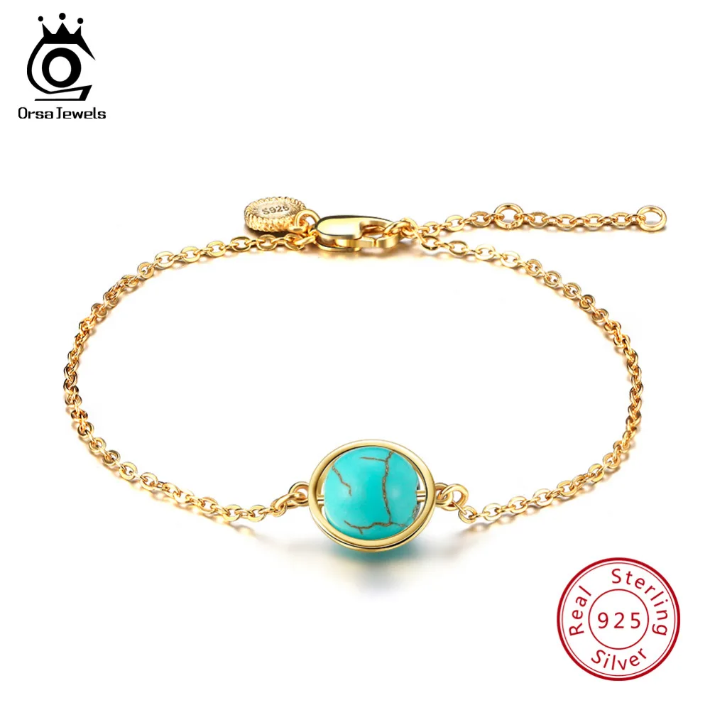 ORSA JEWELS настоящие 925 пробы серебряные женские браслеты 4 серебряный с натуральным камнем и золотого цвета Модные женские ювелирные изделия SB21