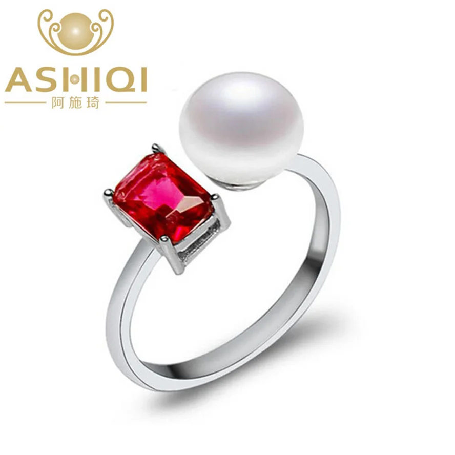 ASHIQI натуральный пресноводный жемчуг Кольцо Настоящее 925 пробы серебряные кольца для женщин свадьбы ювелирные изделия из жемчуга merry ро