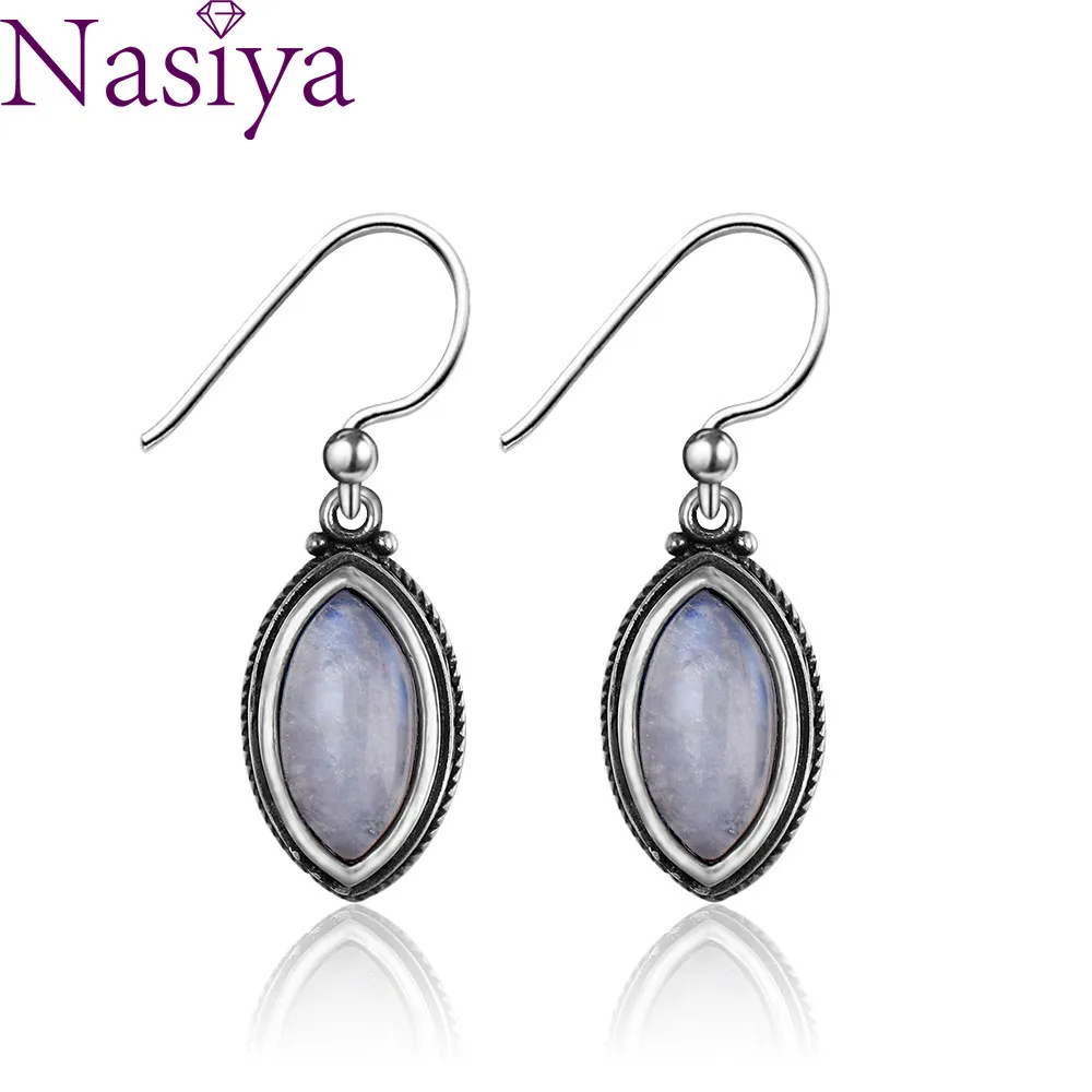 Ювелирные изделия, 925 пробы, серебряные серьги с подвеской в виде лошадиного глаза, 5X10 мм, натуральный лунный камень, висячие серьги, модные, ...