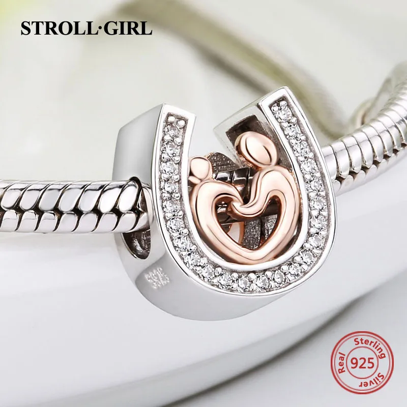 Strollgirl Серебро 925 Подвески любовник из рук в руки бусинами подходят оригинальный кулон Пандора браслет DIY Jewelry аксессуары для подарков