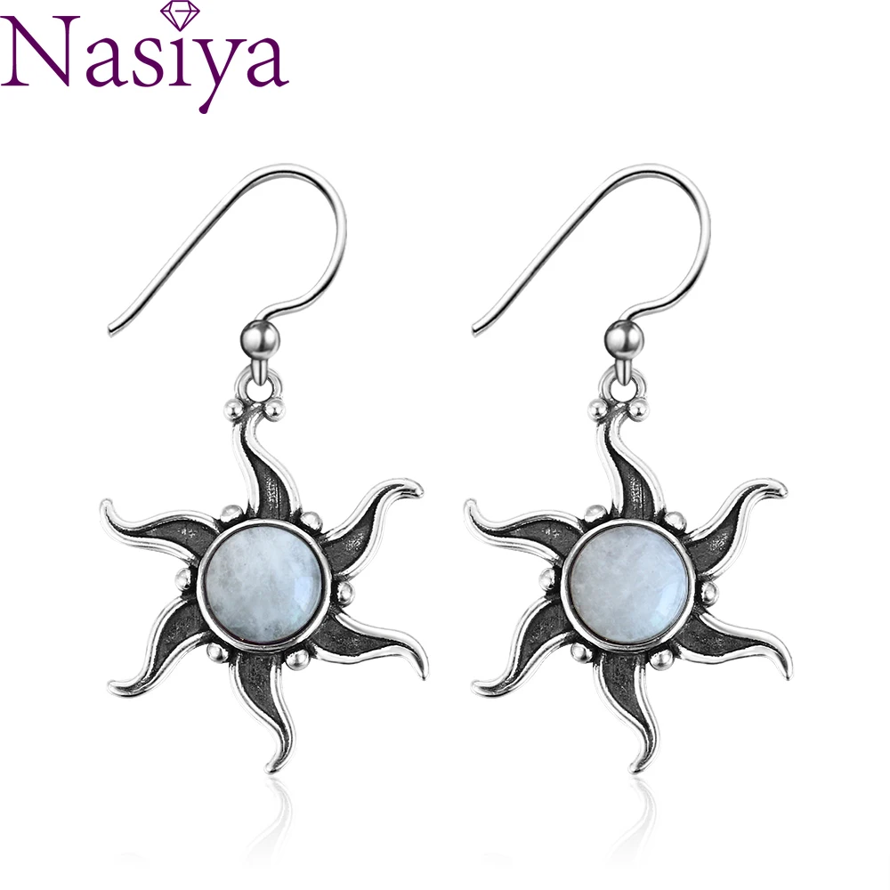 Винтажные висячие серьги в форме цветка из натурального лунного камня, богемные серьги-капли из серебра 925 пробы для женщин, хорошее ювелирн...
