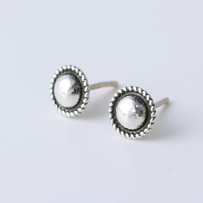 925 серебро глянцевая зеркальная поверхность Серьги Серебряные старинные сделать старый дикий круглый Глянцевая серьги-гвоздики ASOS для жен...