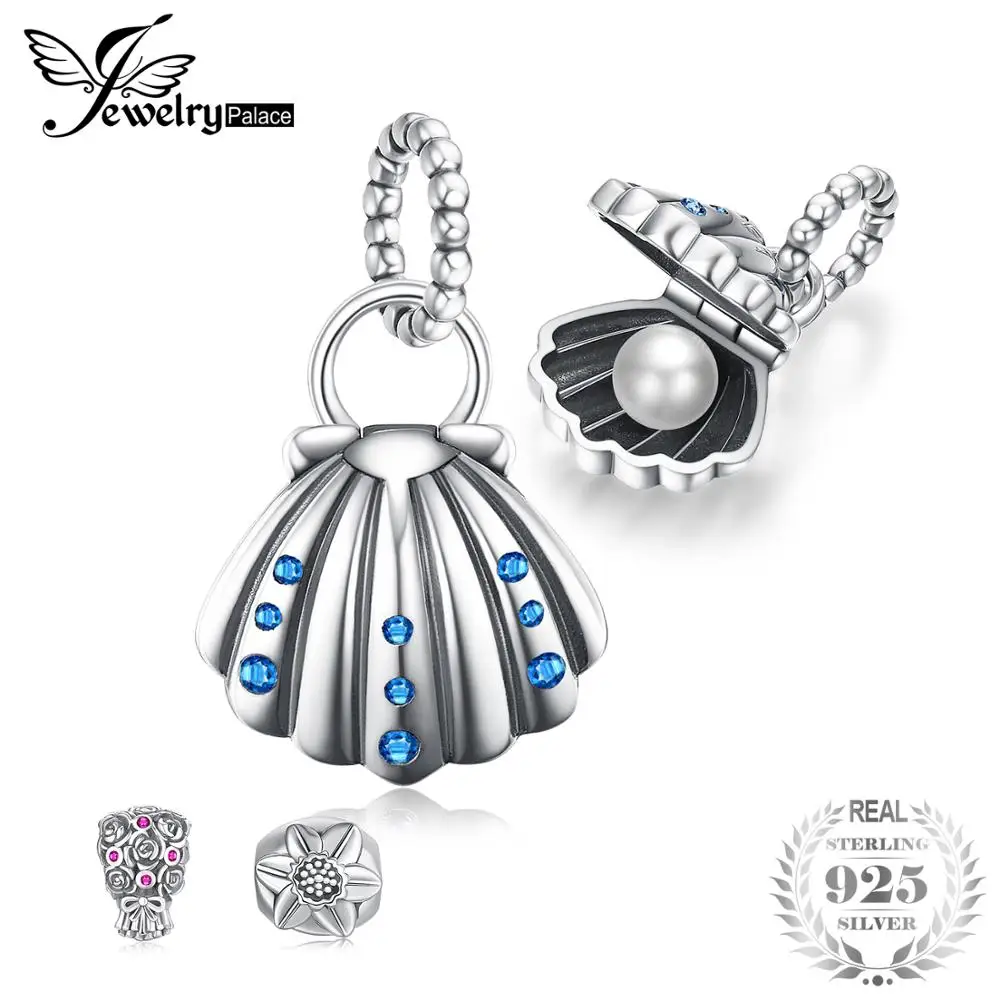 JewelryPalace Sea Love Oyster в виде ракушки моллюск жемчуг синий кубический цирконий 925 пробы Серебряный Шарм бусины для женщин 2018 Новый Лидер продаж