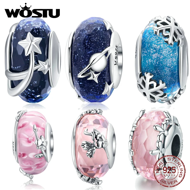 WOSTU 100% подлинное Стерлинговое Серебро 925 пробы милые бусины из муранского стекла подвески для браслета DIY оригинальные ювелирные изделия подарок