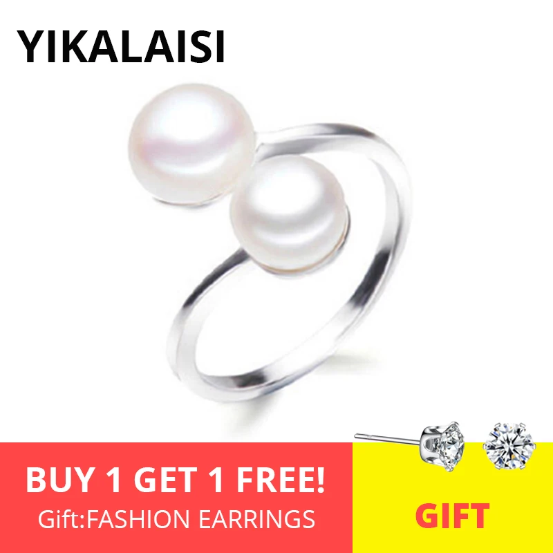 Кольцо из стерлингового серебра 925 пробы YIKALAISI, кольца из натурального жемчуга, украшения для женщин 8-9 мм, пресноводной воды, кольцо с двумя жемчужинами, регулируемые