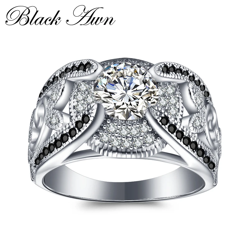 [Черный ость] 5,4 Грамм натуральная 925 пробы Серебряные ювелирные изделия кольца для женский, черный и белый камень Femme Bague C321